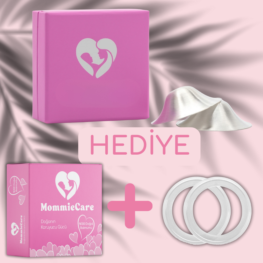 Bu ürünü tercih eden anneler için, bakım deneyimini daha da tamamlayıcı hâle getirdik. Doğal balmumu göğüs ucu koruyucu kapak, ürüne hediye olarak sunularak cildi nemlendirmeye ve rahatlatmaya yardımcı olur. Aynı zamanda gümüş kapakla uyumlu kullanım için silikon halka da set içerisinde hediye olarak yer alır. Böylece hem daha konforlu bir kullanım sağlanır hem de ürün deneyimi kişiselleştirilir.
